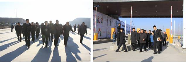 在保稅物流中心卡口上方"青海曹家堡保稅物流中心"以中英文兩種字體呈現(xiàn),海關(guān)標(biāo)識赫然醒目。王黎明副省長一行在實地查看了1#、2#保稅倉庫、卡口、查驗庫、辦事大廳等設(shè)施,并邊走邊聽取物產(chǎn)集團(tuán)總經(jīng)理王玉輝關(guān)于工程施工進(jìn)展情況的匯報。